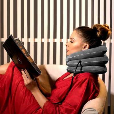 Nadaje się też dla pacjentów ze zesztywniającym zapaleniem stawów kręgosłupa. Ten kołnierz za pomocą wolnego dmuchania uwalnia ściśnięte kręgi, które są przyczyną boleści szyi oraz ramion.